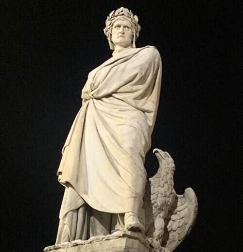 Dante Alighieri, a revered poet whose Divine Comedy is widely regarded as the best poem of the Middle Ages, was born around 1265 in Florence. His poetry influenced literature in Europe for centuries beyond his death. At a time when most poetry was written in Latin, Dante chose to write his verse in Italian dialects, earning him the nickname of “Father of the Italian Language.” He was exiled from Florence to Ravenna for political reasons, and it was during his time in exile that he wrote The Divine Comedy.